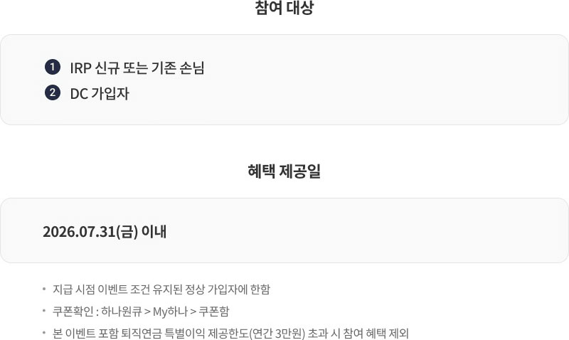 - 본 이벤트는 IRP/DC가입자 대상입니다. (가입채널 무관)